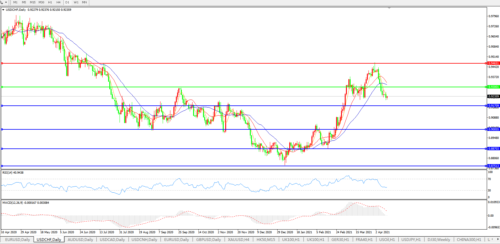 美元兑瑞郎USDCHF 日线图: