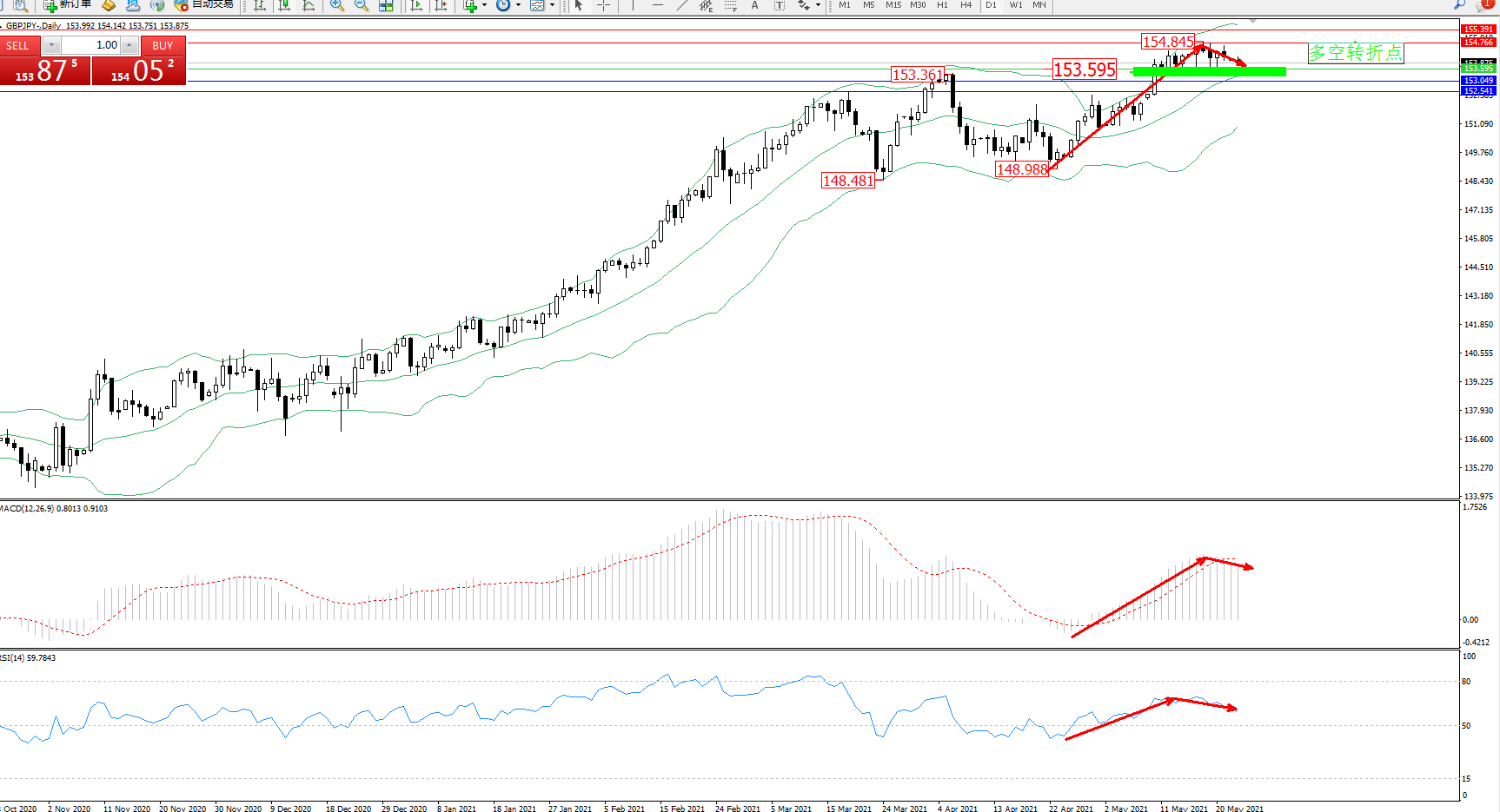 多空转折点:153.595