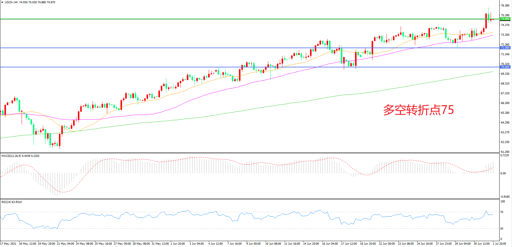 多空转折点:75.00