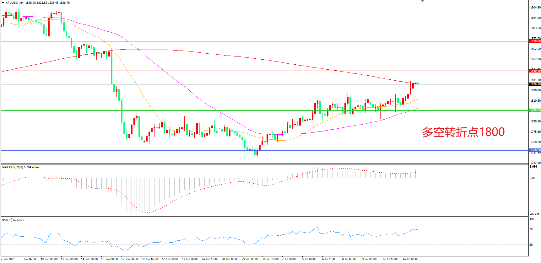 交易策略: 在1800.00之上看涨,目标1840.00 1870.00