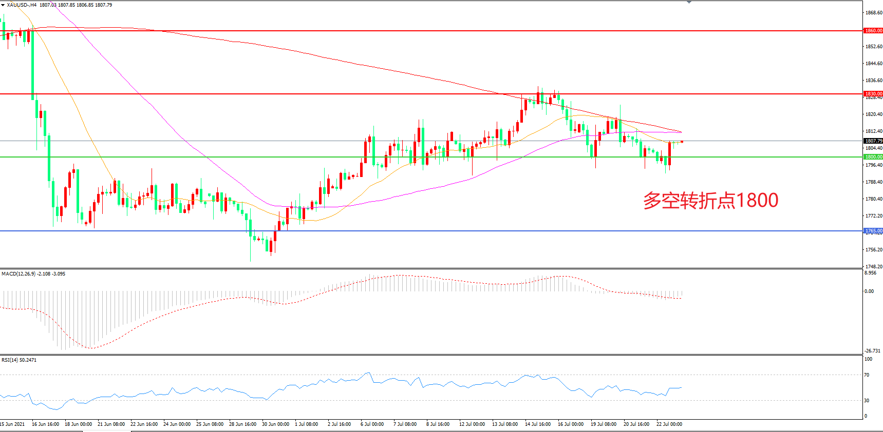 交易策略: 在1800.00之上看涨,目标1840.00 1870.00