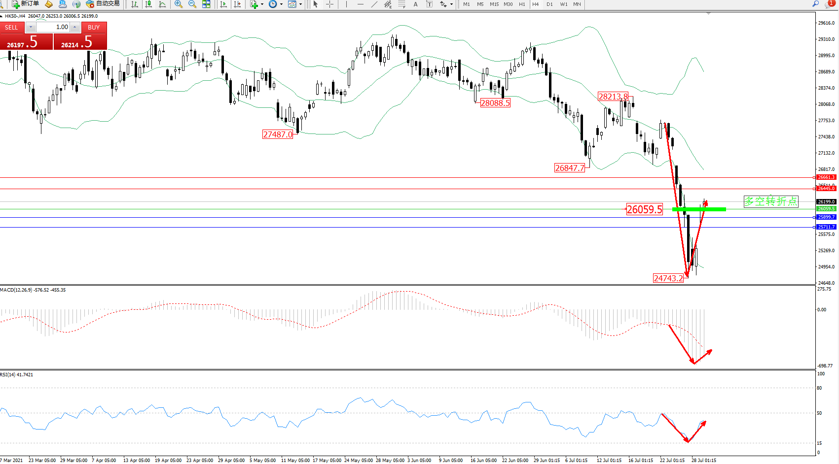 恒指HK50 ——4小时K线图显示: