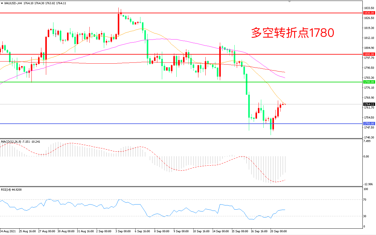 周一(9月20日),美联储即将召开FOMC会议,美国众议院还将投票表决提高28万亿美元债务上限的方案,市场不确定性增加,避险情绪升温推升金价小幅反弹,收报1764美元/盎司。除了最为重要的议息会议之外,市场还面临债务上限的压力,目前美国两党在债务上限问题上存在较大分歧,如果美国违约引发历史性的金融危机,金价将迎来更大幅度的下跌。