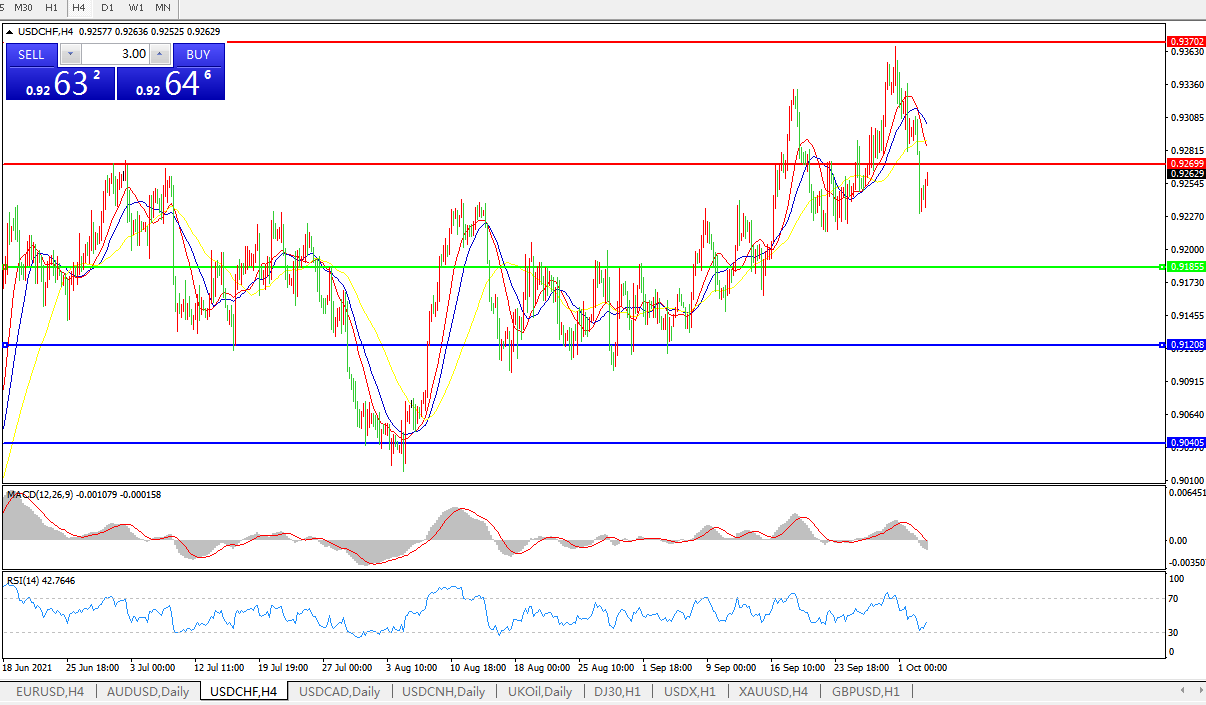 美元兑瑞郎USDCHF 4小时图: