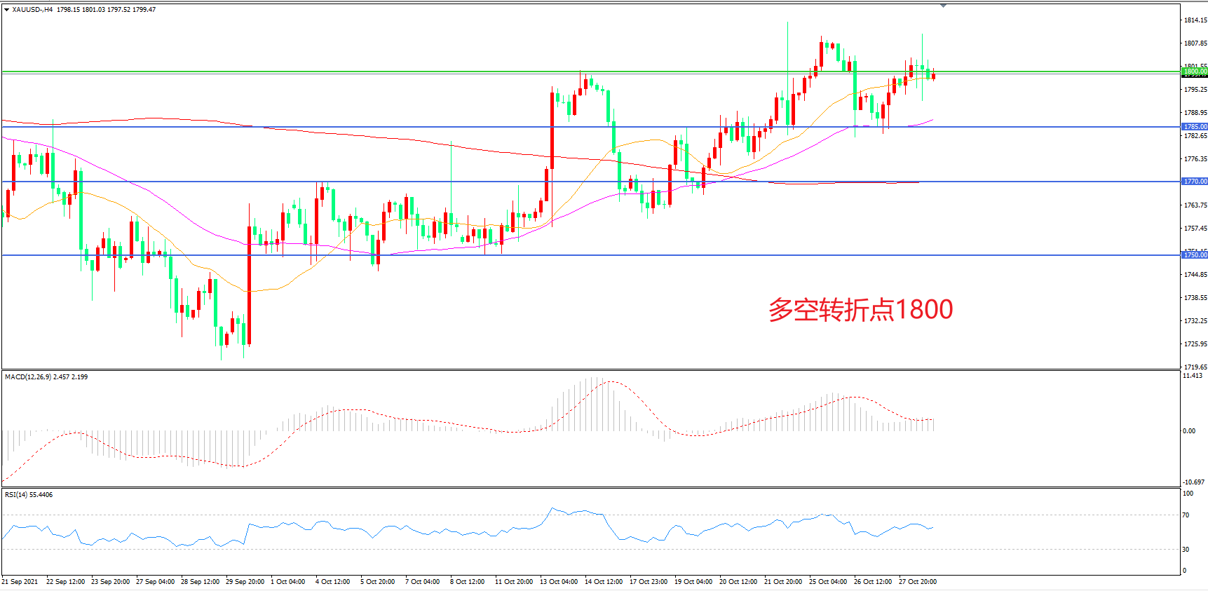 交易策略:在1800.00之上看涨,目标1830.00 1845.00