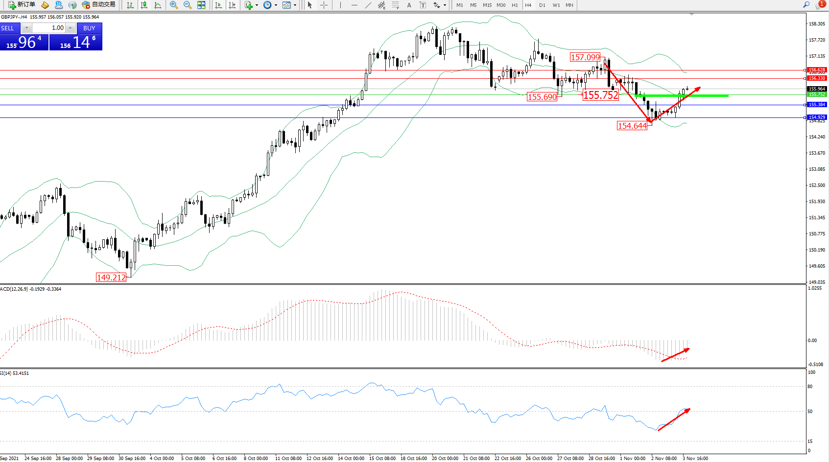 交易策略:155.752上方看涨,目标156.330、156.628