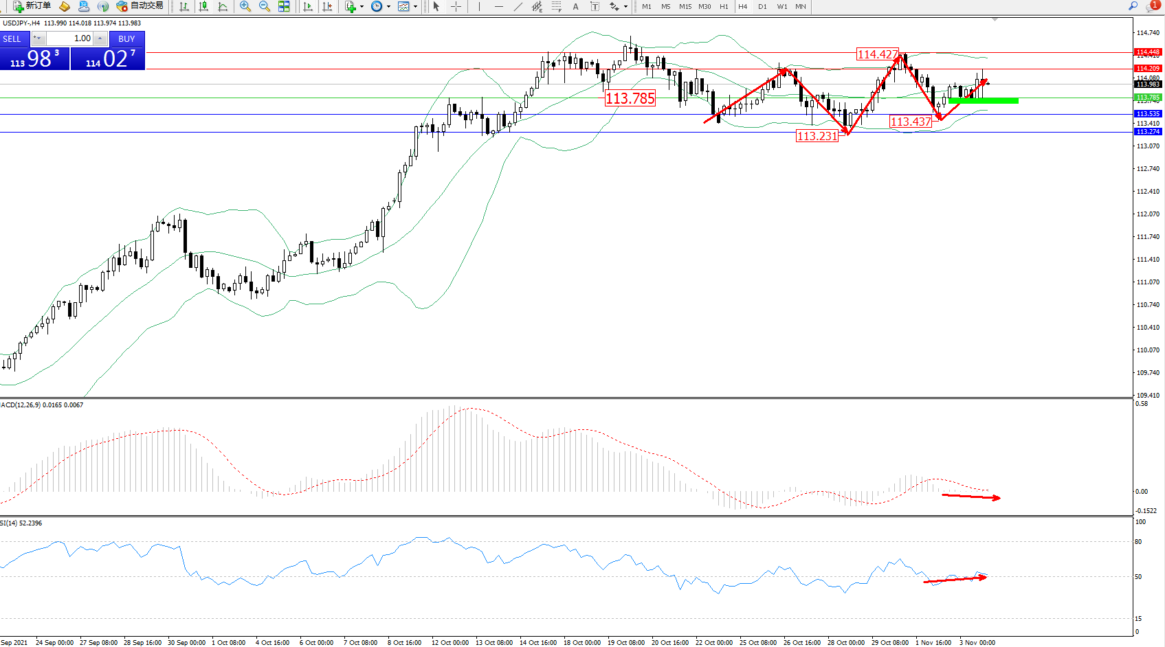 交易策略:113.785上方看涨,目标114.209、114.448
