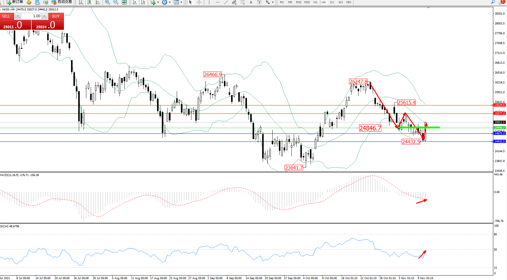 恒指HK50 ——4小时K线图显示: