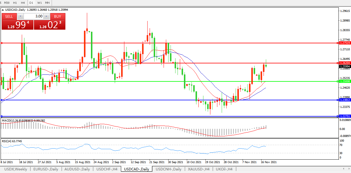 美元兑加元USDCAD 日线图:
