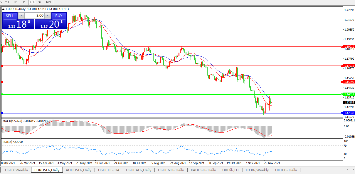 技术面简析:日图均线呈空头排列,汇价快速拉升后窄幅正当,MACD运行于0轴下但量能开始缩量,RSI小幅走升 ,预计短期汇价大概率将延续反弹修正。