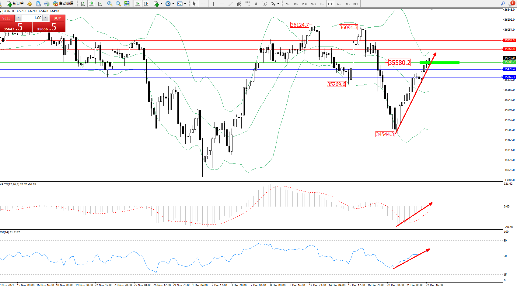 交易策略:35580上方看涨,目标35768、35895