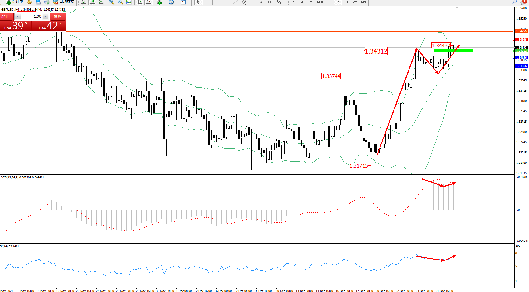 交易策略:1.34312上方看涨,目标1.34566、1.34756