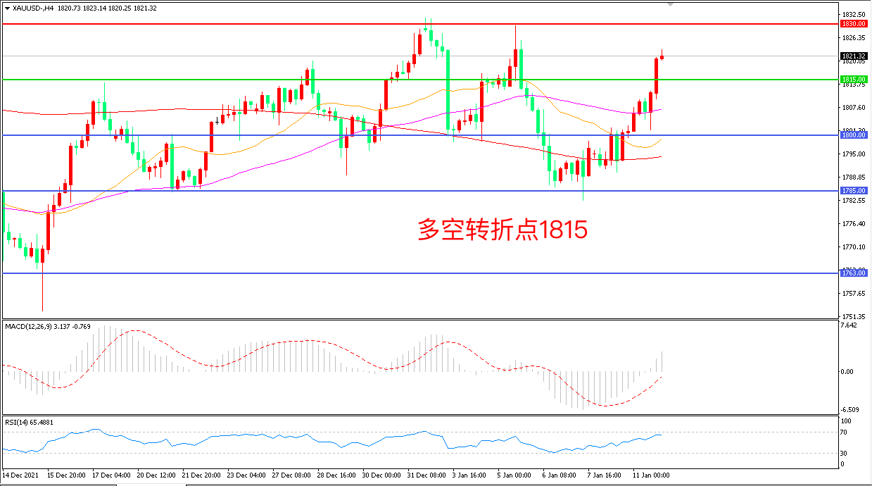 交易策略:在1815.00之上看涨,目标1830.00 1845.00