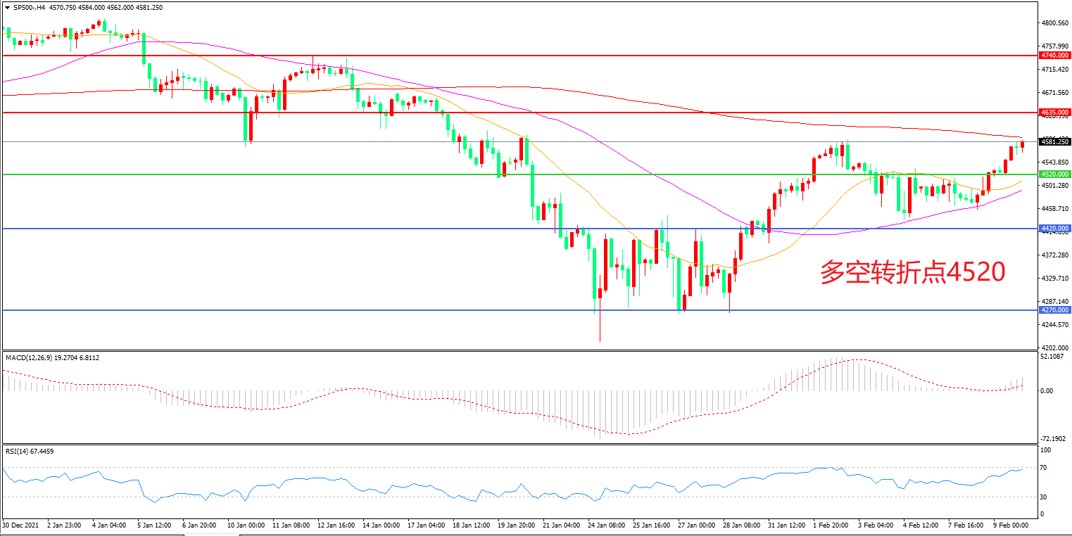 交易策略:在4520.00之上看涨,目标4635.00        4740.00