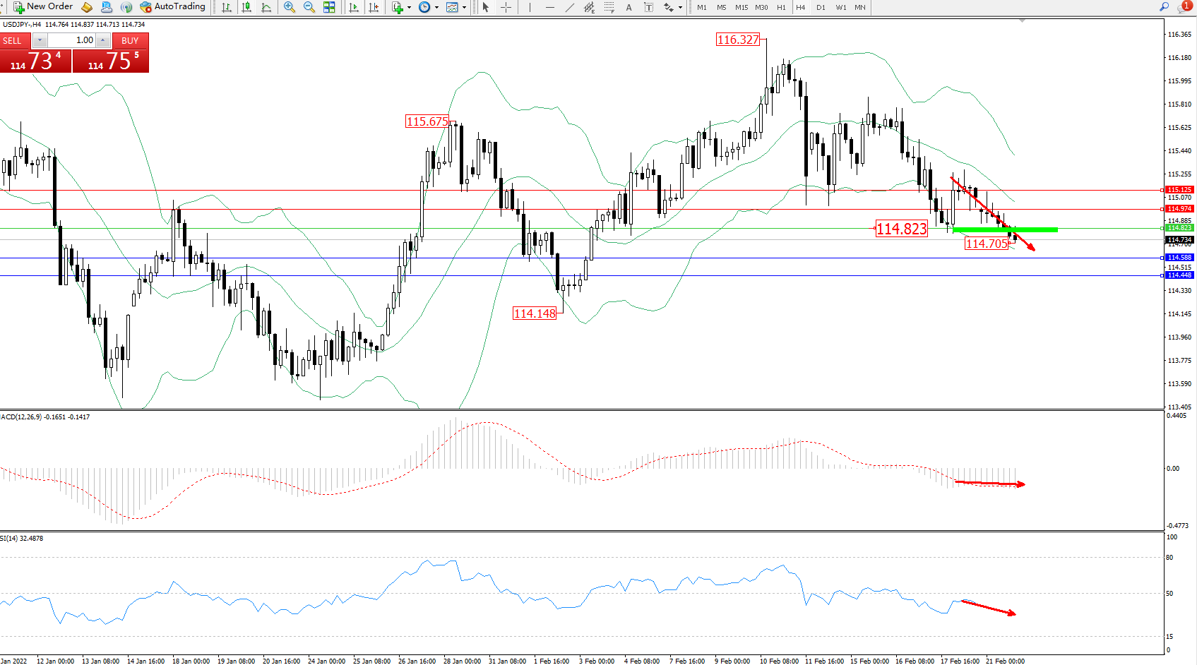 交易策略:114.823下方看跌,目标114.588、114.448