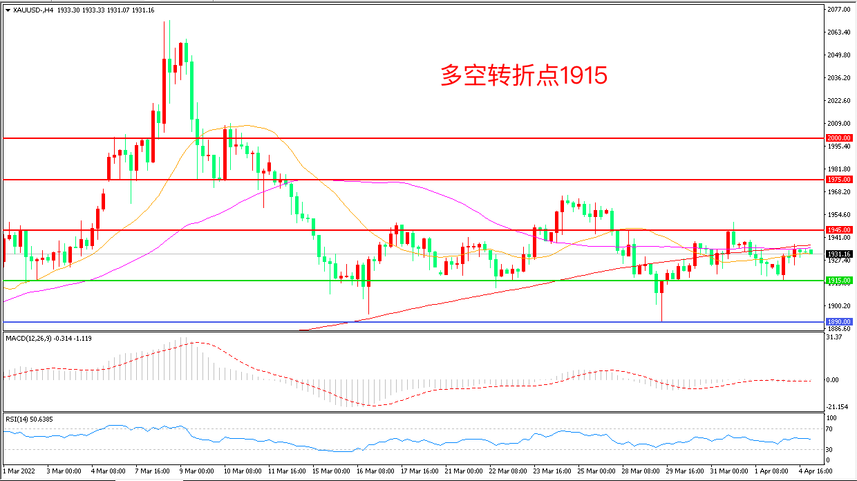 备选策略:在1915.00之下看跌,目标1890.00       1865.00
