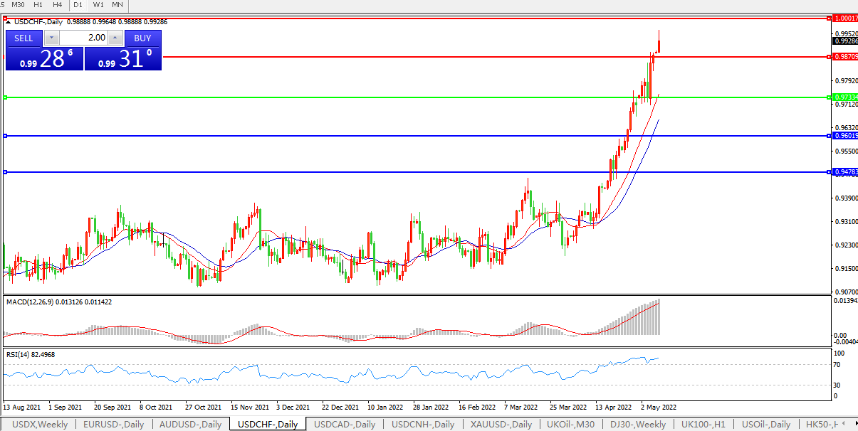 美元兑瑞郎USDCHF 日线图: