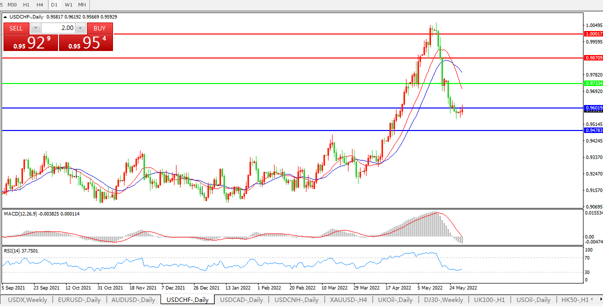 美元兑瑞郎USDCHF 日线图: