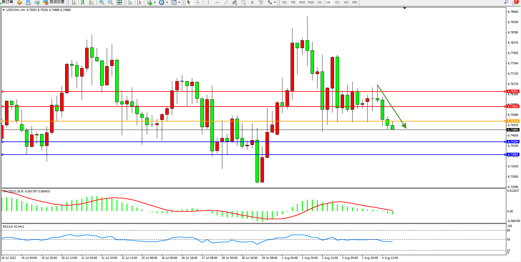 交易策略:6.75218下方看跌,目标6.74394、6.73883
