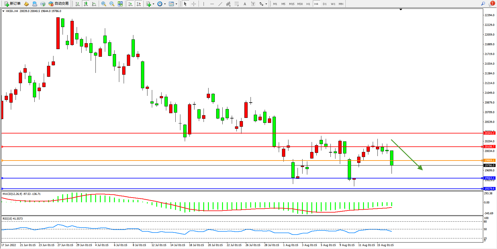 恒指HK50 4小时图