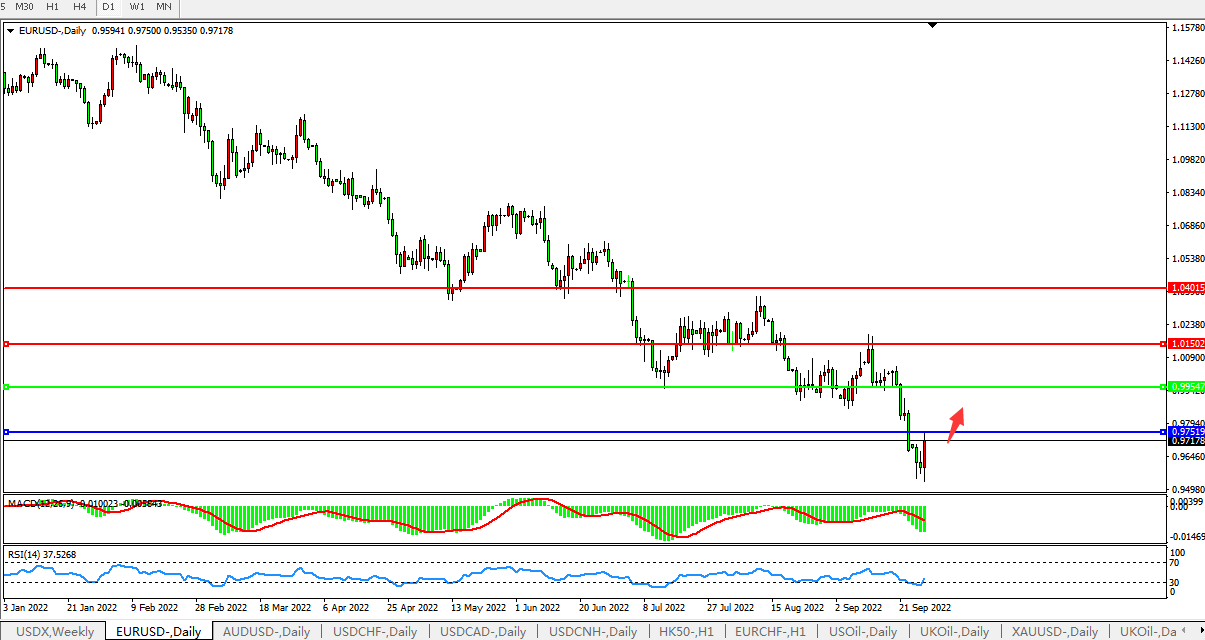 交易策略:0.9950下方看跌,目标0.9750、0.9550