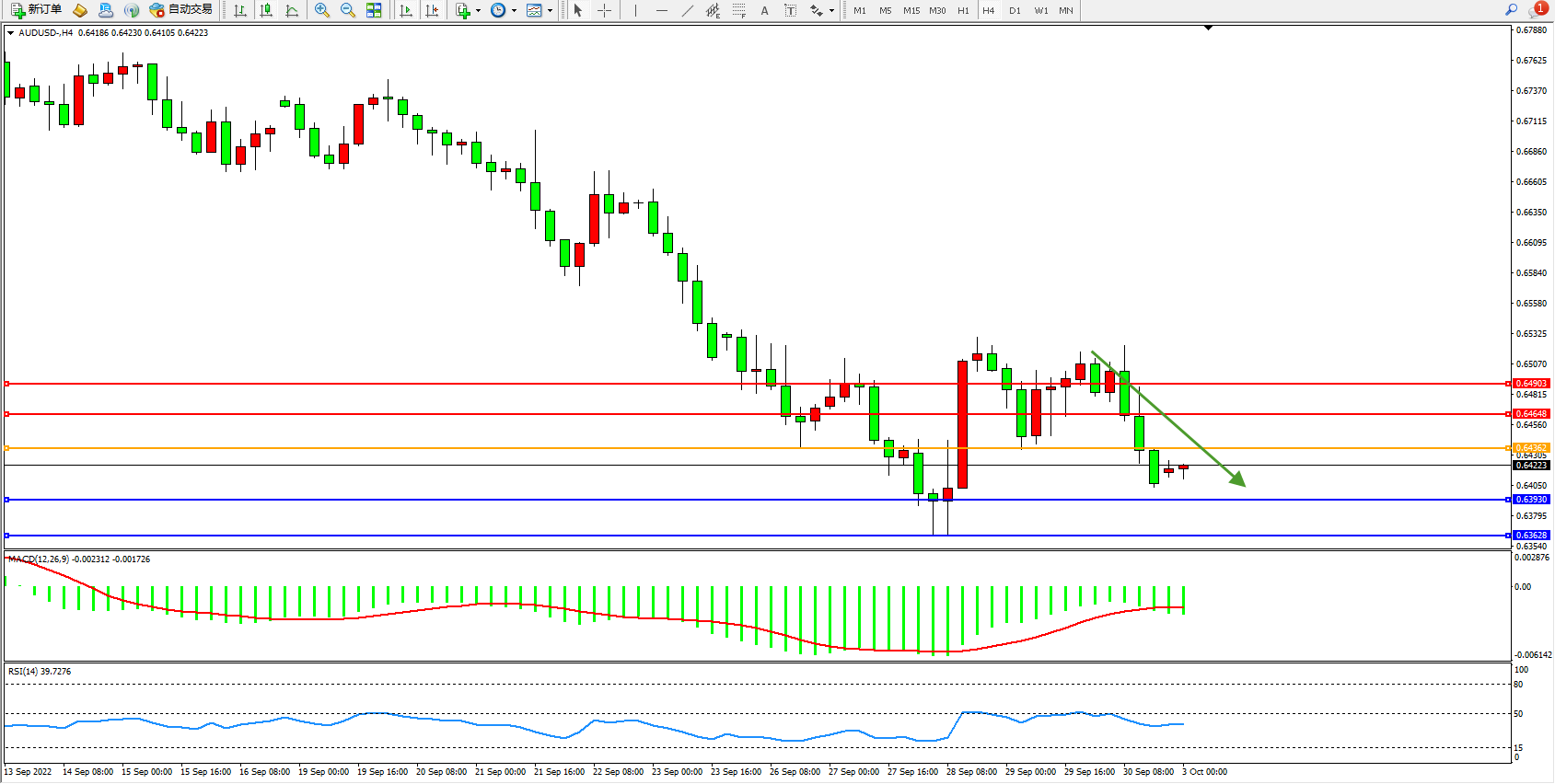 澳元美元AUDUSD——4小时K线图显示:
