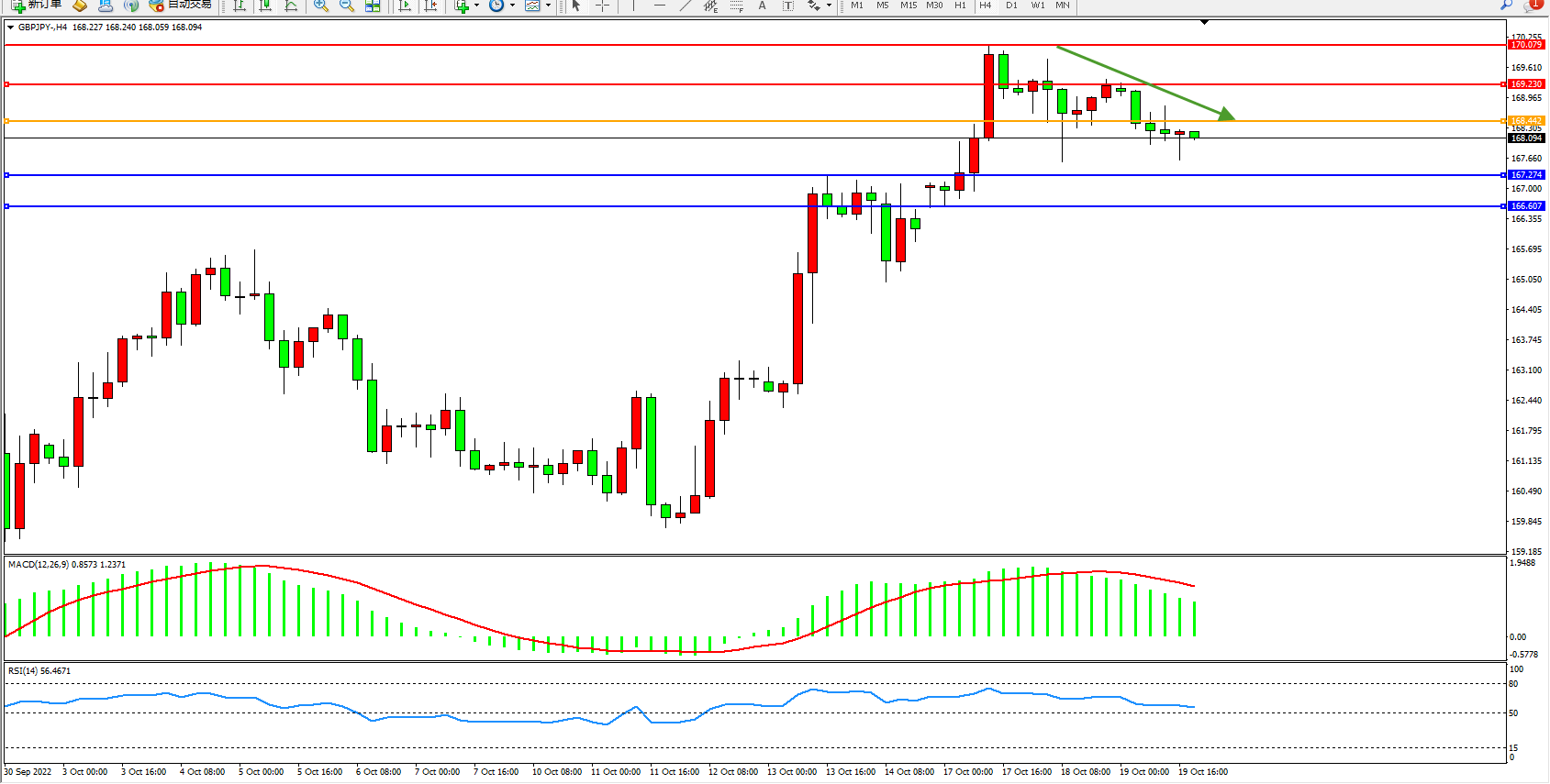 备选策略:168.442上方看涨,目标169.230、170.079