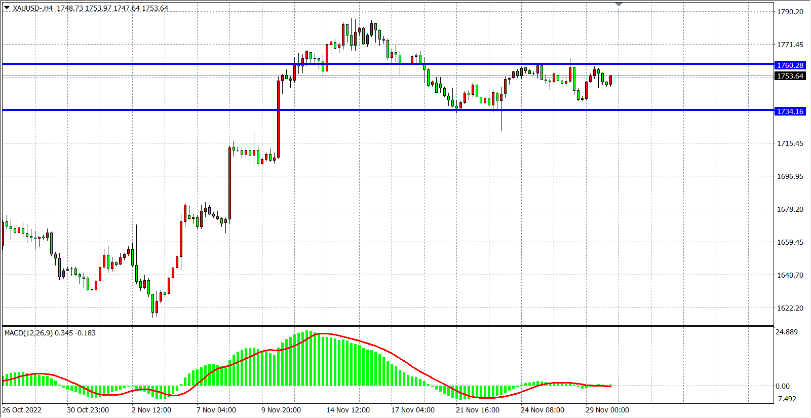 周一(11月29日)美联储官员再度发表鹰派言论,12月加息50个基点的概率从75%下降到66%,美指连涨三日,现货黄金盘中走高逾20美元后跌落1750关口,最终小幅收涨0.45%。当前市场静待鲍威尔讲话,一旦发出放缓加息步伐的信号,美指近几日涨幅恐将回吐,反之则对黄金形成打压。