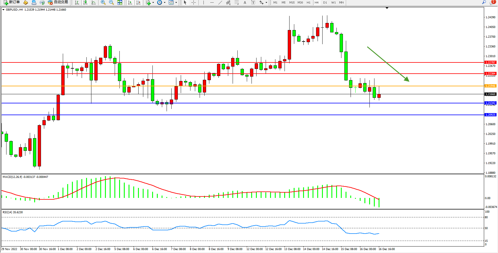 英镑美元GBPUSD ——4小时K线图显示: