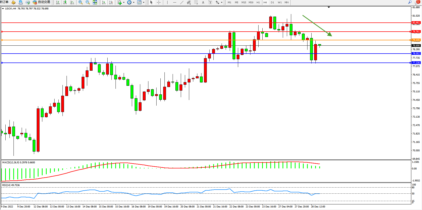 原油USOil——4小时K线图显示: