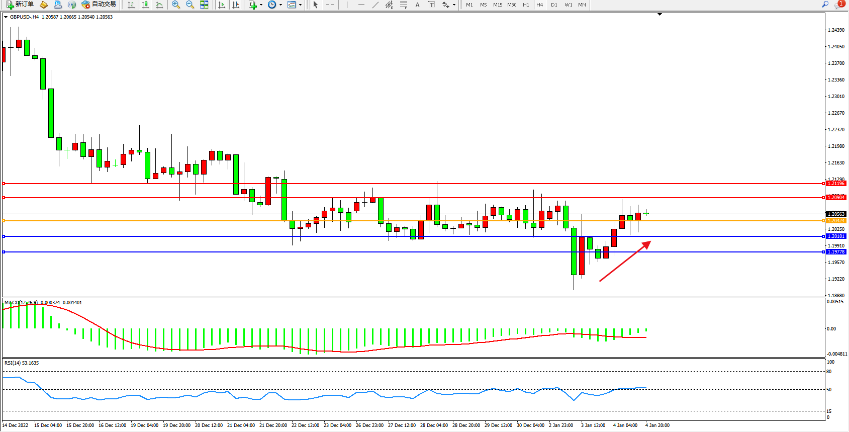英镑美元GBPUSD ——4小时K线图显示: