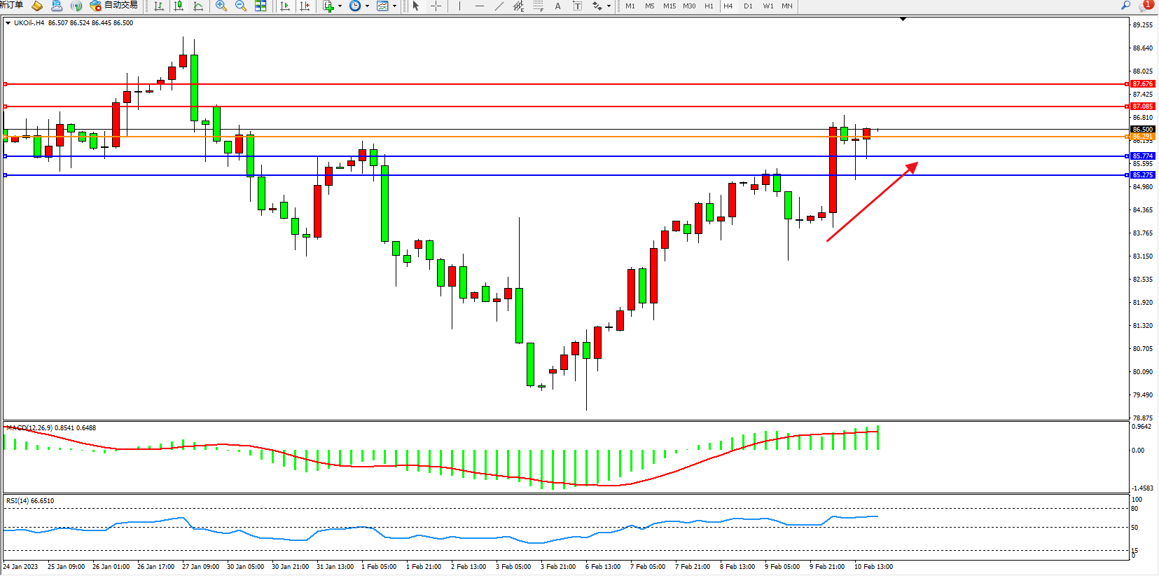 布油UKOil——4小时K线图显示:
