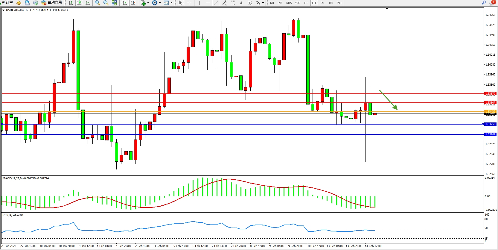 美元加元USDCAD——4小时K线图显示: