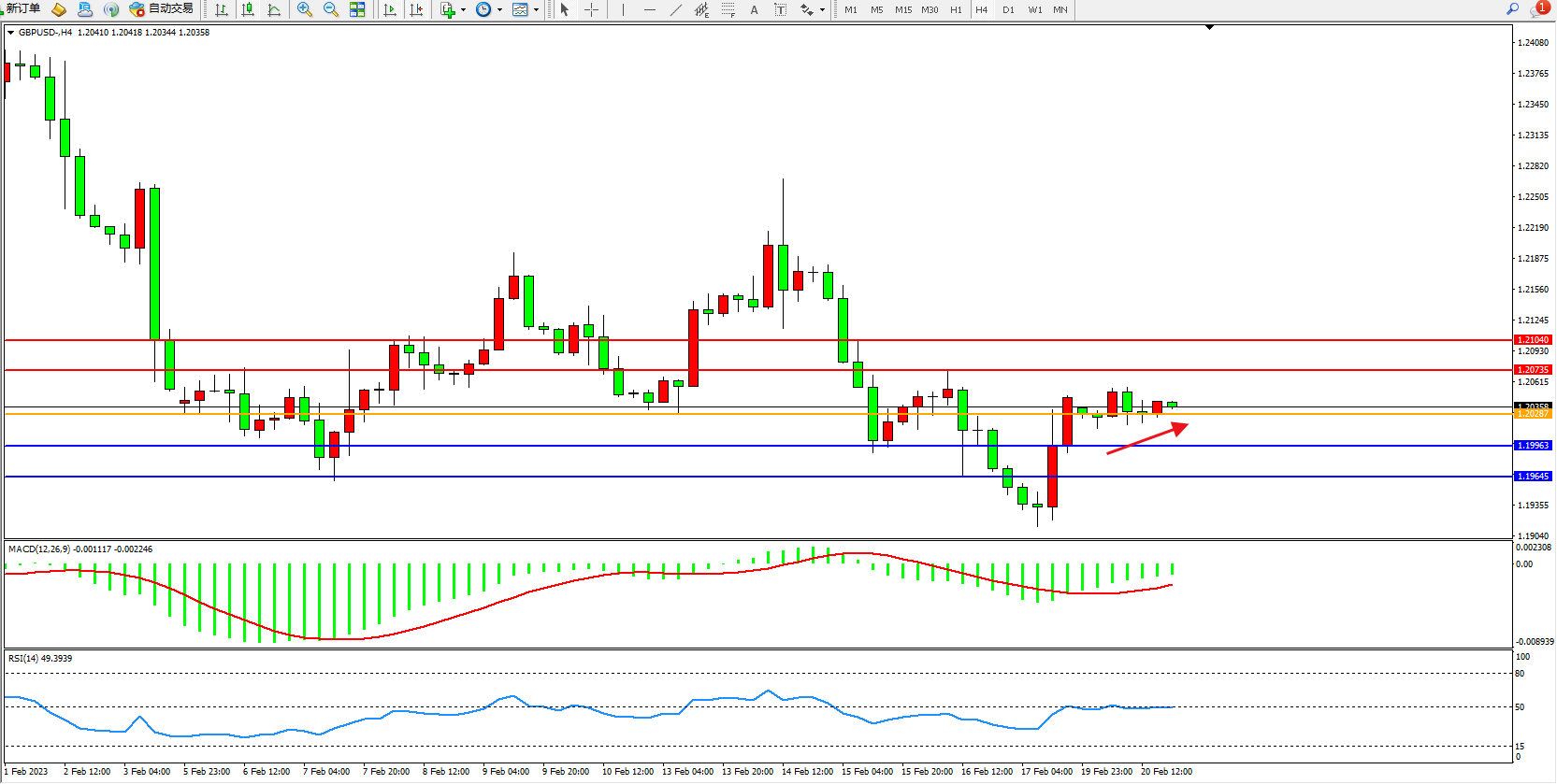 交易策略:1.20287上方看涨,目标1.20735、1.21040