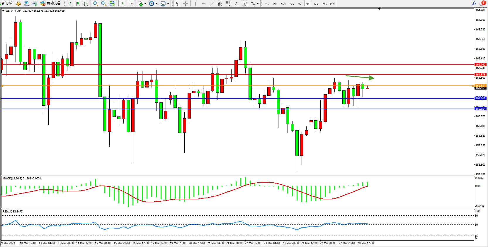 备选策略:161.469上方看涨,目标161.976 162.360