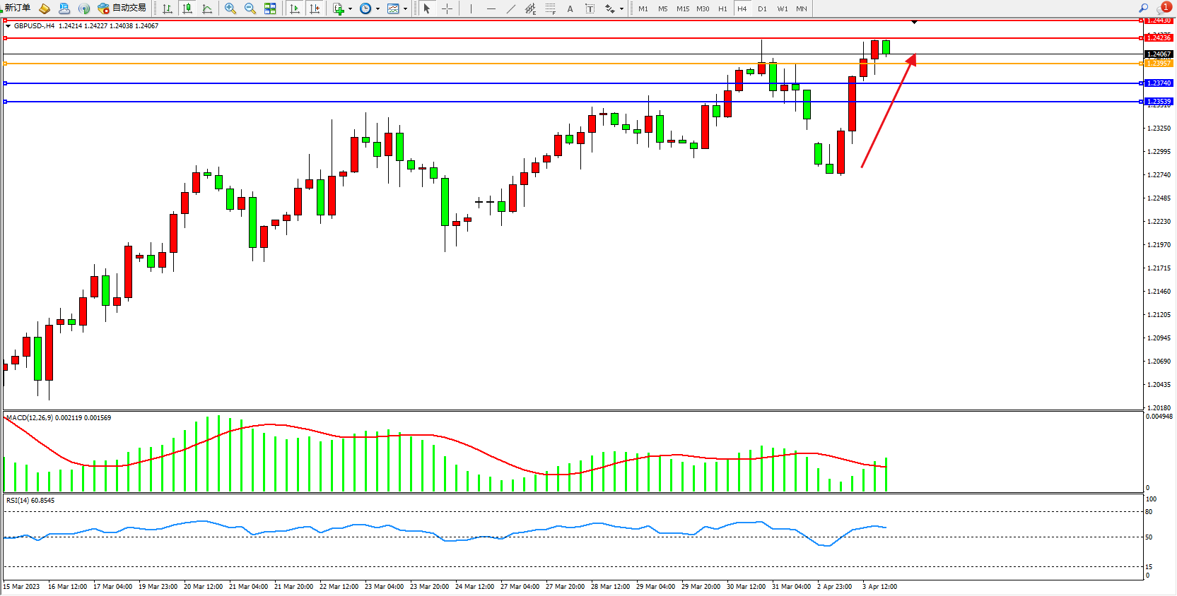 阻力位:1.24236 1.24430