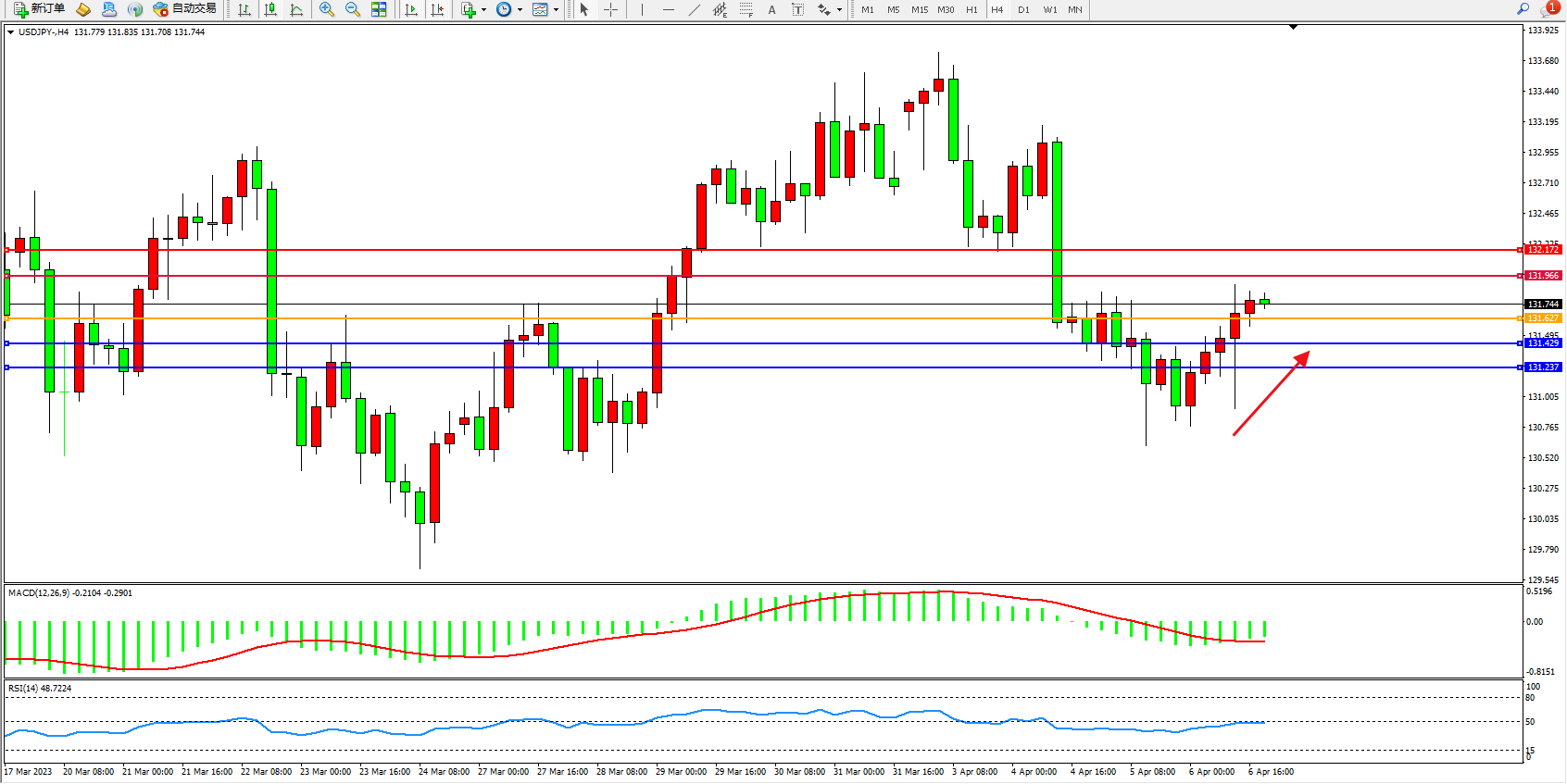 交易策略:131.627上方看涨,目标131.966  132.172