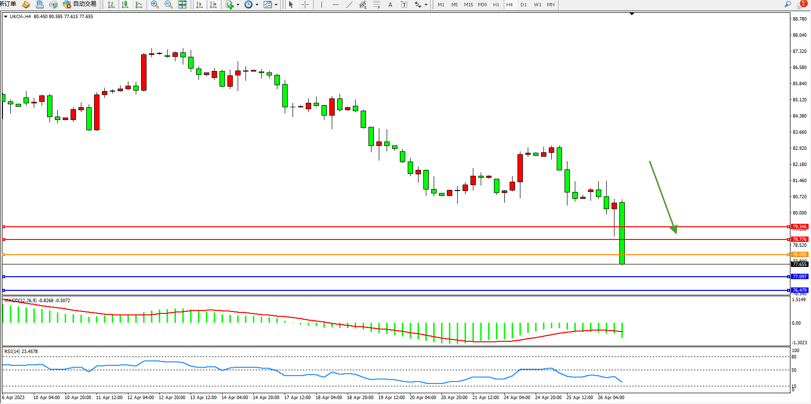支撑位:77.097 76.479