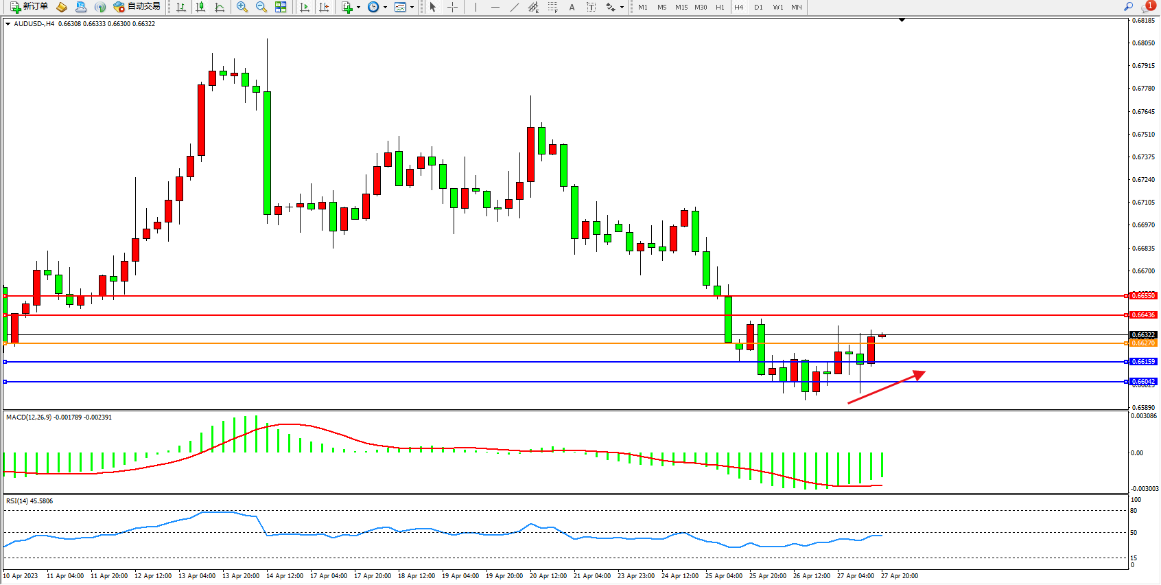 阻力位:0.66436 0.66550