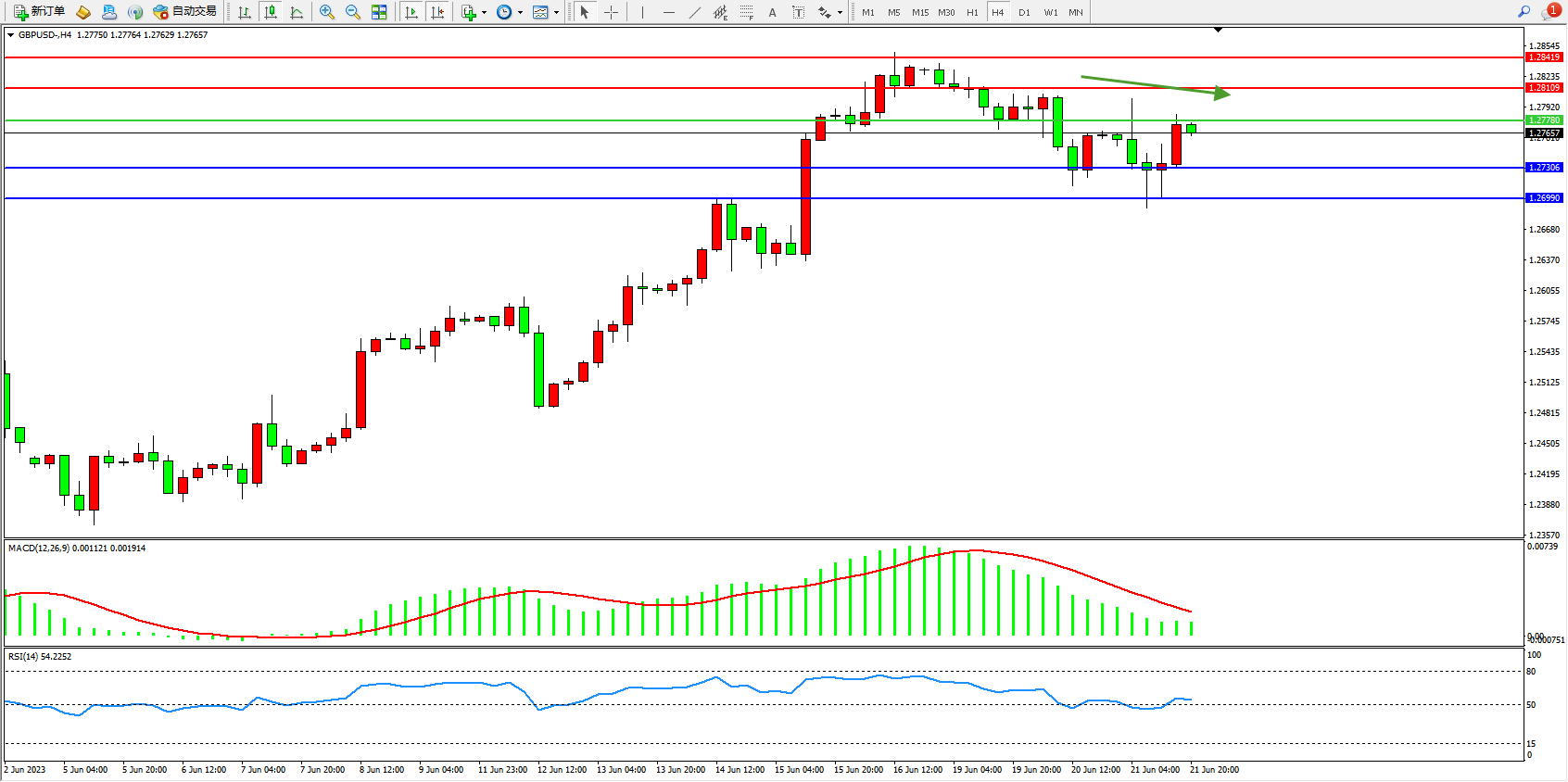 备选策略:1.27780上方看涨,目标1.28109  1.28419