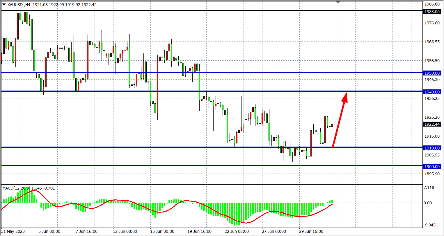 交易策略:1910上方看涨,目标 1940  1950