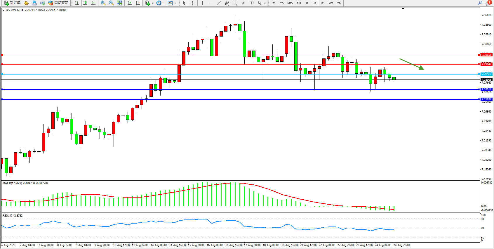 备选策略:7.28562上方看涨,目标7.29642 7.30658