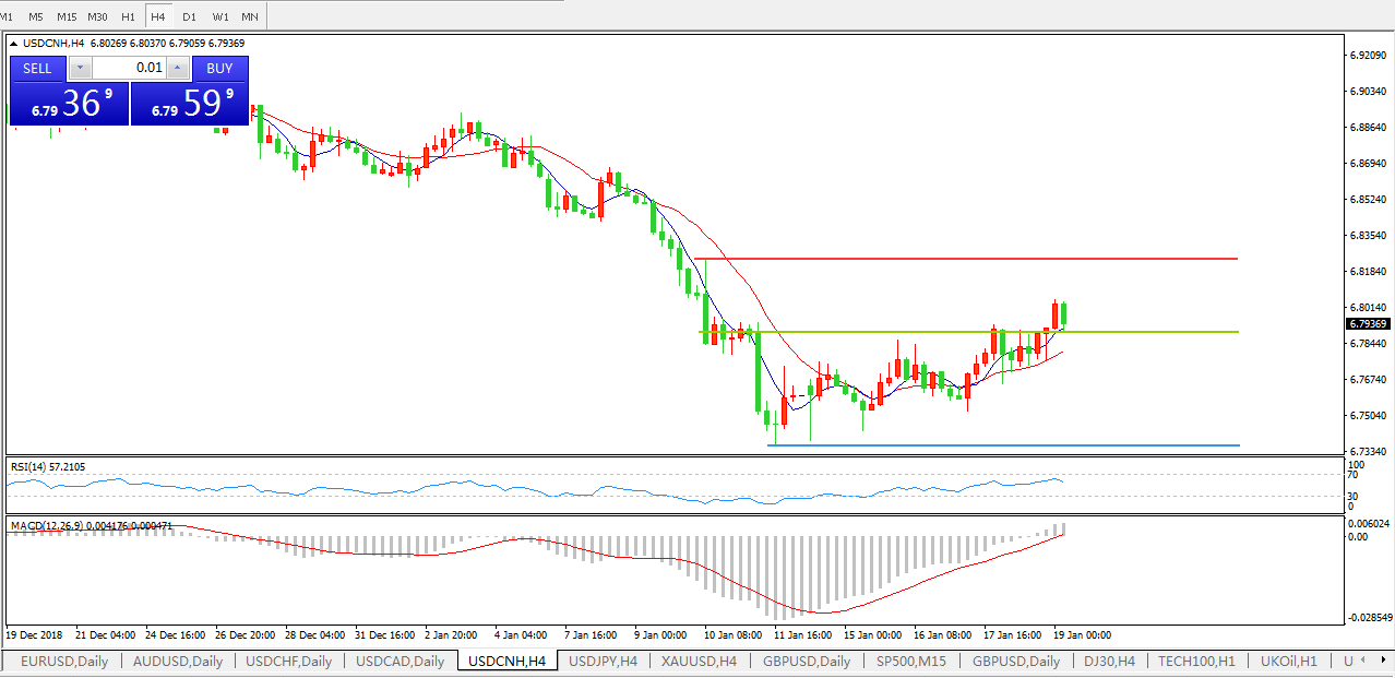 美元兑人民币USDCNH  4小时图: