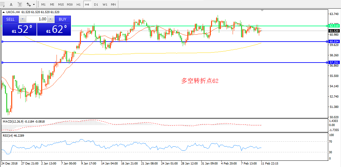 交易策略:在62.00之下看跌,目标60.00   58.00