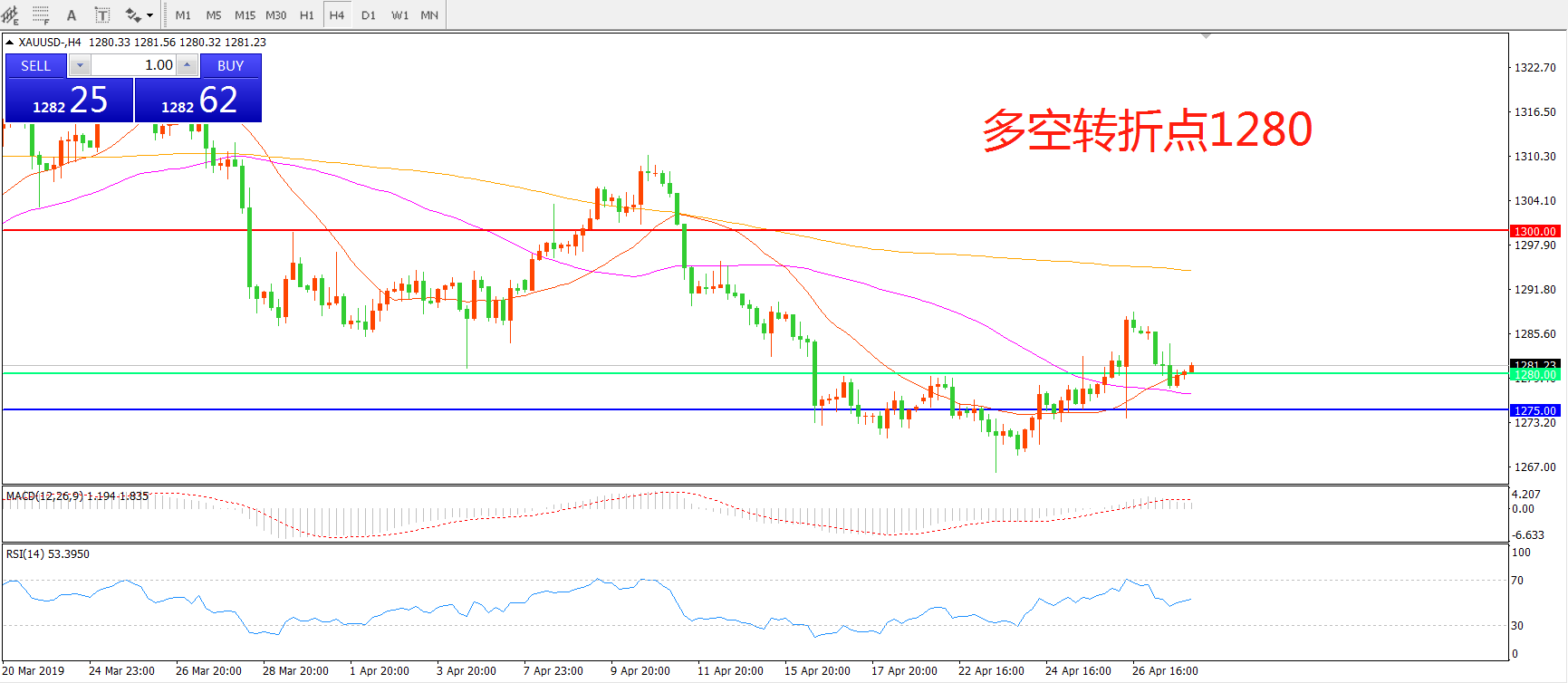 多空转折点:1280.00