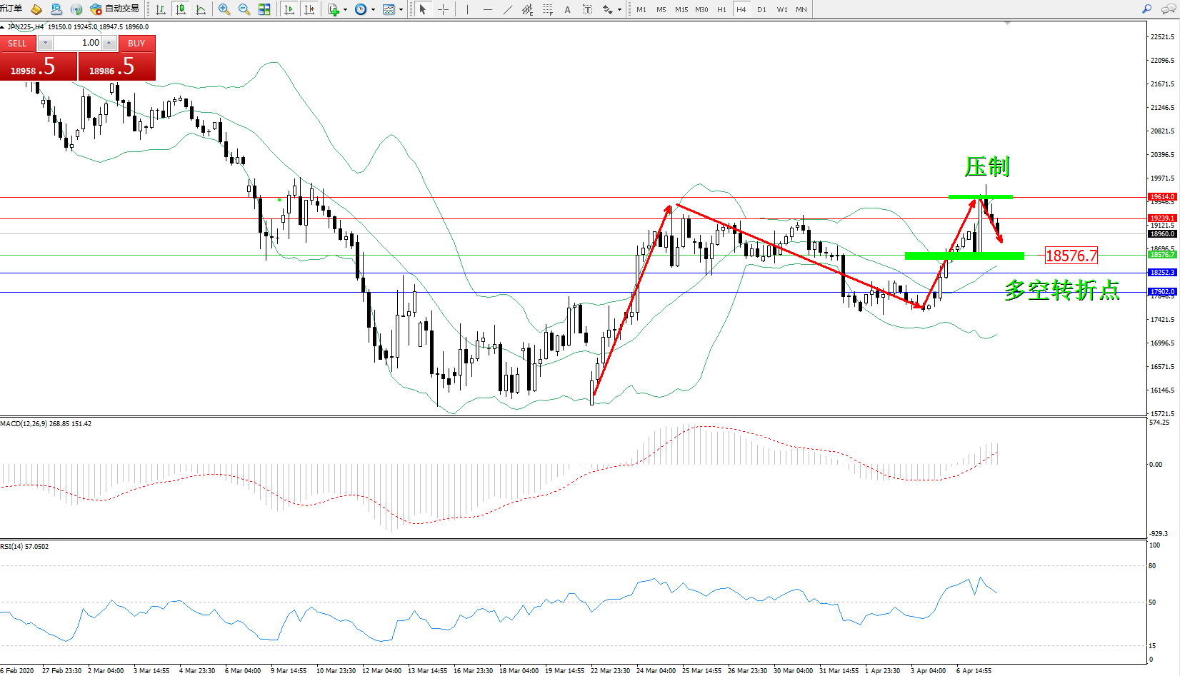 日经225指数4月7日(周二)收盘上涨372.20点,涨幅2.00%,报18948.50点。随着疫情在全球范围内造成的经济影响不断加剧,日本首相安倍晋三宣布东京及其他6个都府县进入紧急状态,紧急状态为期1个月,日本财务大臣麻生太郎称,日本可能正面临有史以来最大风险,日本的金融系统相对稳定,目标是尽快通过追加预算,日本政府批准价值108.2万亿日元的紧急经济刺激计划,其中财政支出39.5万亿日元,日本为经济刺激法案编制了规模为16.8万亿日元的额外预算。