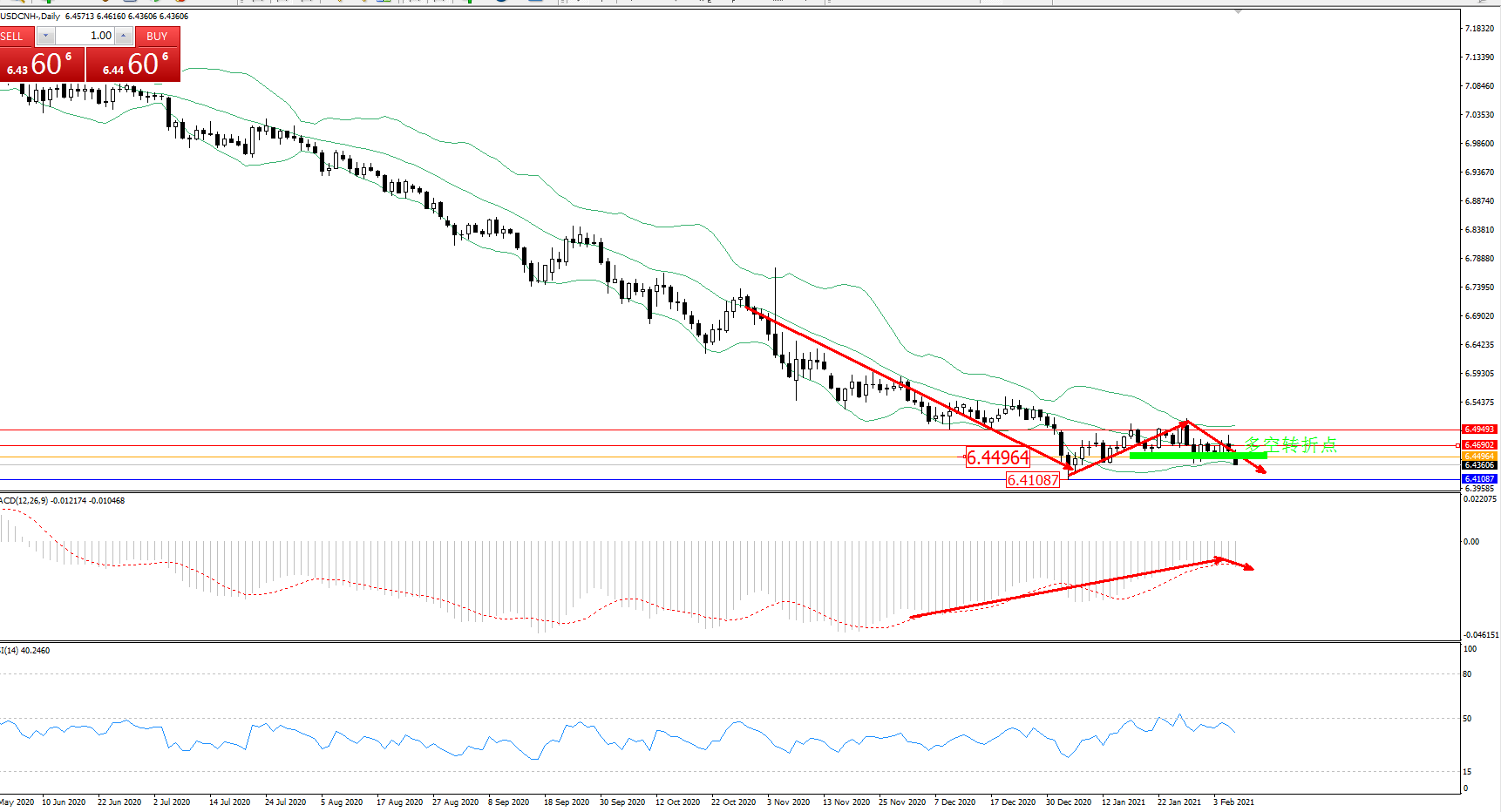 交易策略:6.44964下方看跌,目标6.41087、6.39055