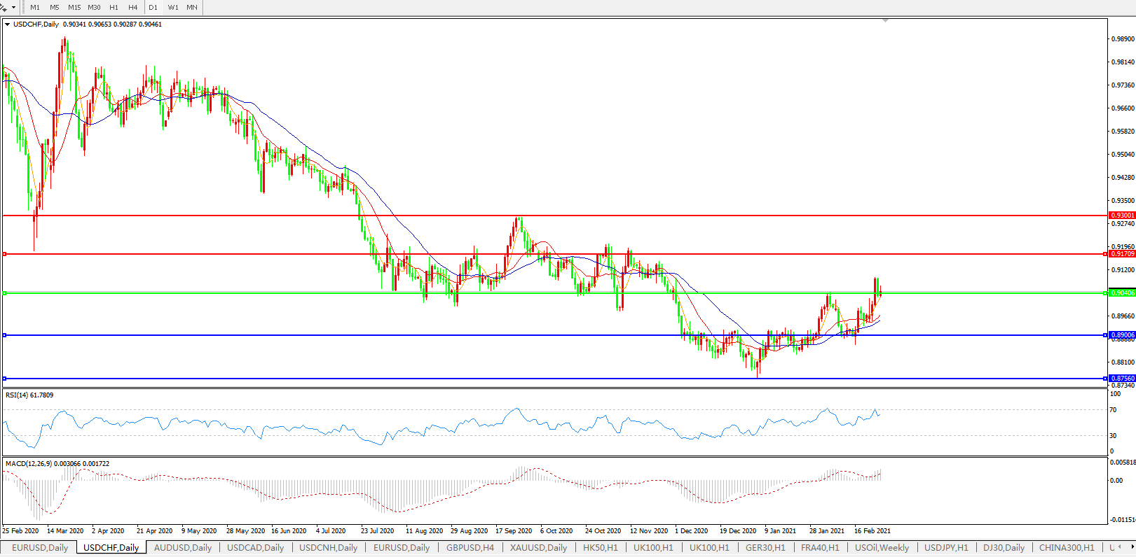 技术性涨势未歇,美元兑瑞郎仍有上行空间
