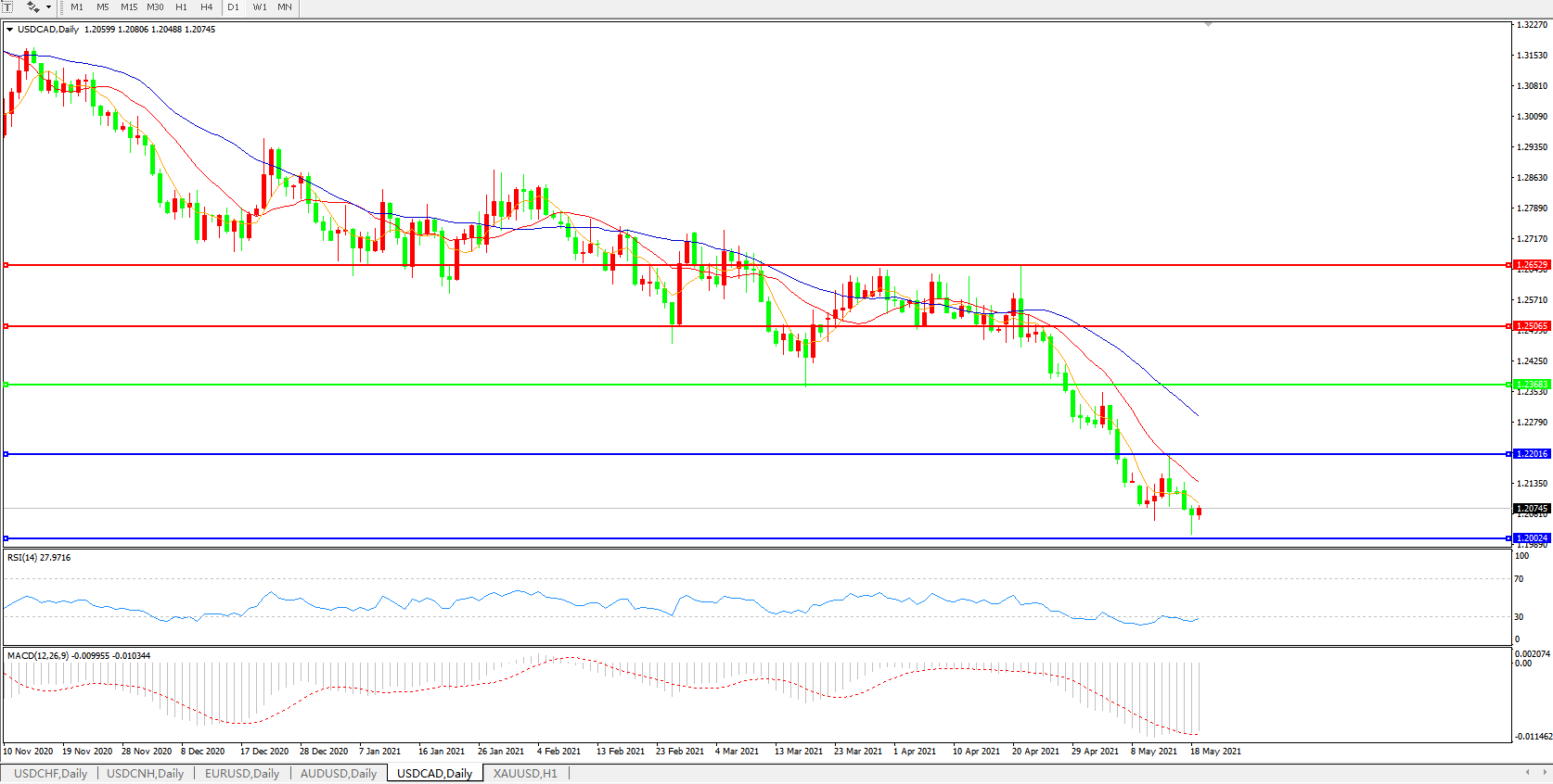 美元兑加元USDCAD    日线图: