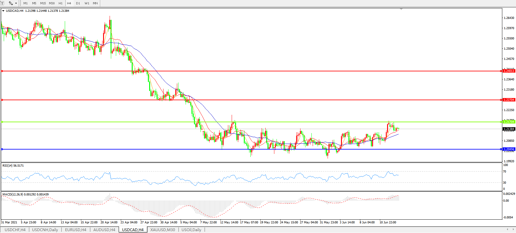 美元兑加元USDCAD    4小时图: